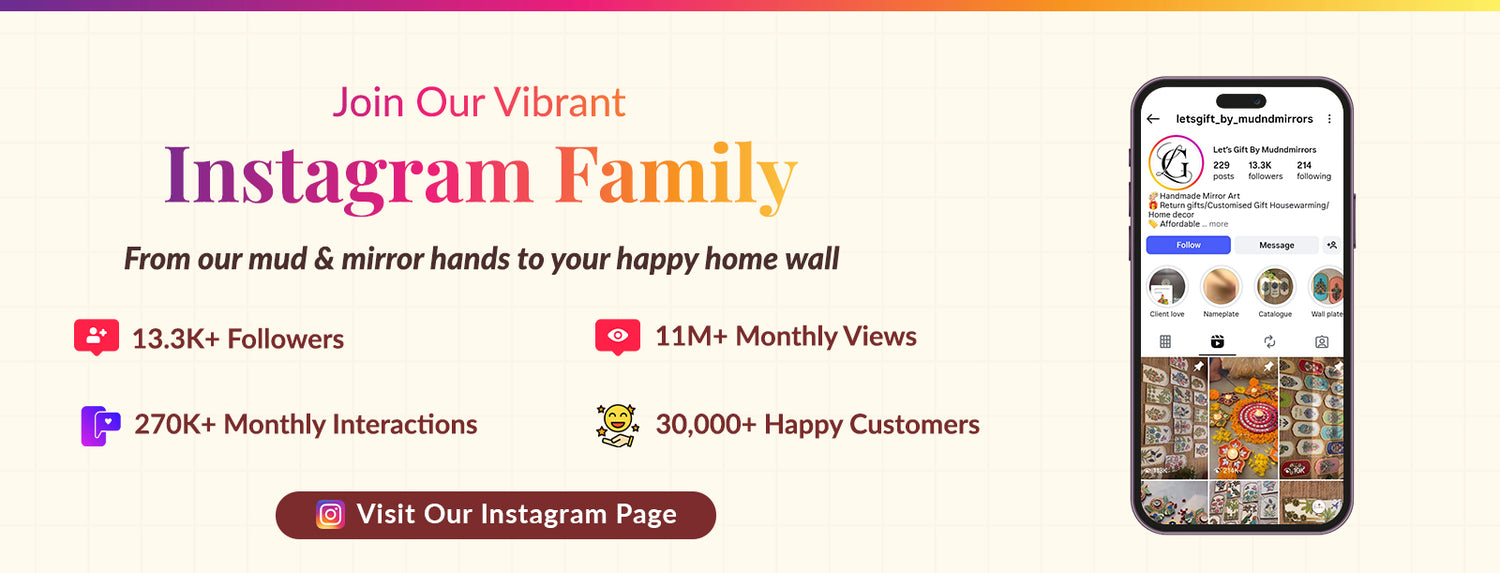 Handcrafted Radha Krishna Lippan Art Wall Plate Decor with Mirrors, Traditional Indian Home Decor