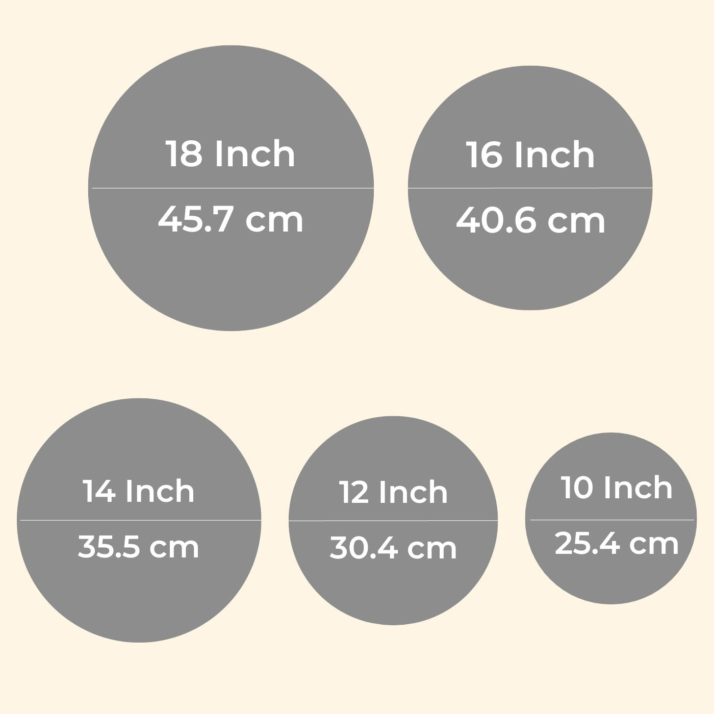 - Dimensions: 10 (l) x 10 (b) inch | 12 (l) x 12 (b) inch | 14 (l) x 14 (b) inch | 16 (l) x 16 (b) inch | 18 (l) x 18 (l) inch