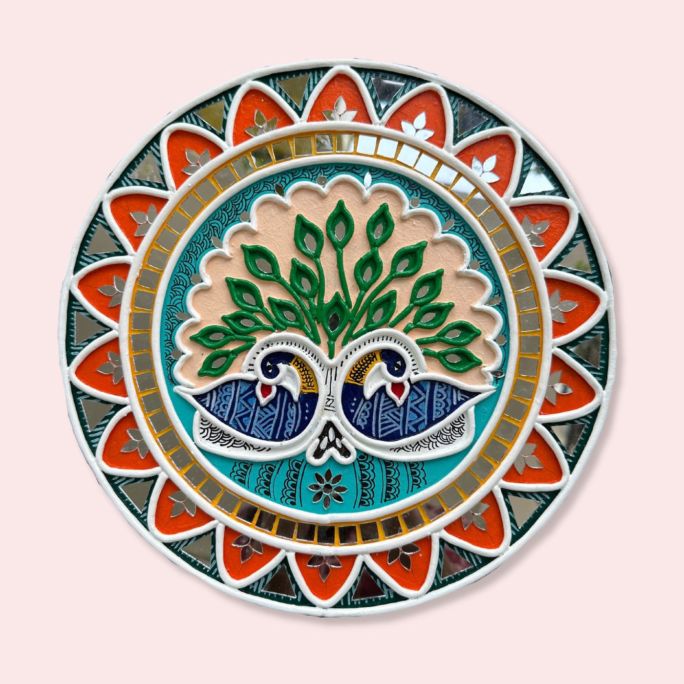 - This wall decor piece is meticulously handcrafted using tiny mirrors, clay, acrylic paints and a durable MDF base.